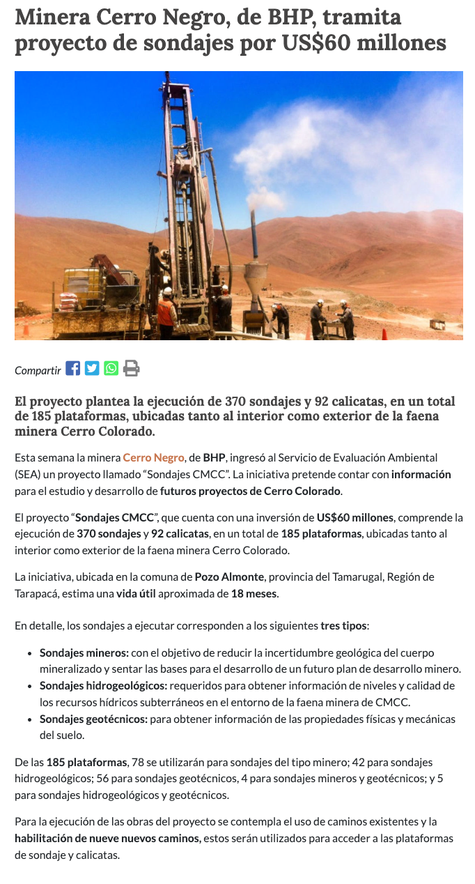 BHP Cerro Colorado: Minera tramita proyectos de sondajes por USD$60 millones - (vilasradio.cl)