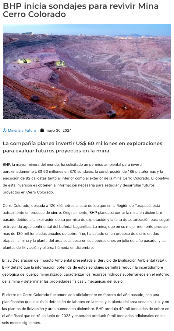 BHP Cerro Colorado: Minera tramita proyectos de sondajes por USD$60 millones - (vilasradio.cl)