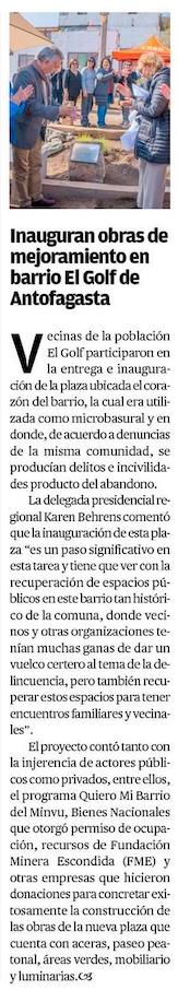 Inauguran obras de mejoramiento en barrio El Golf de Antofagasta - (diarioangamos)