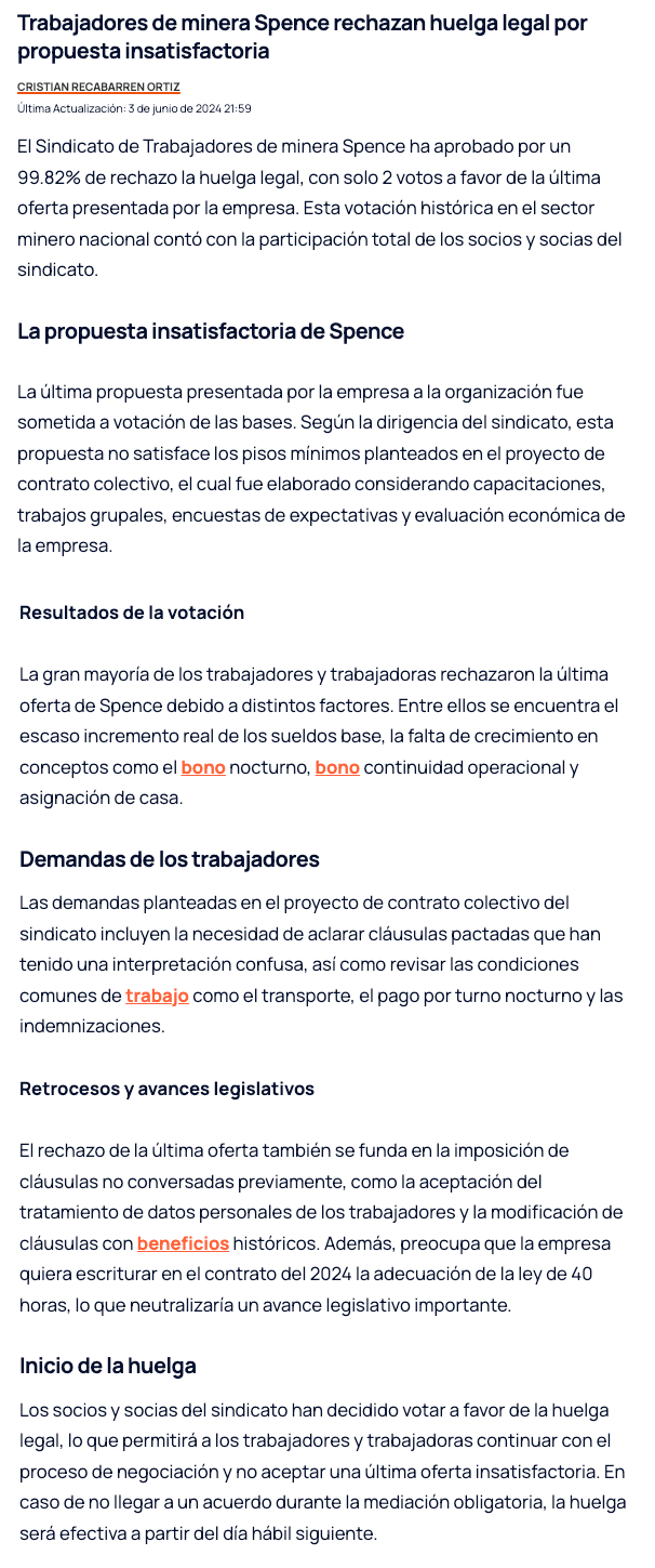 Minera Spence solicitó mediación a la Dirección del Trabajo - (cooperativa online)
