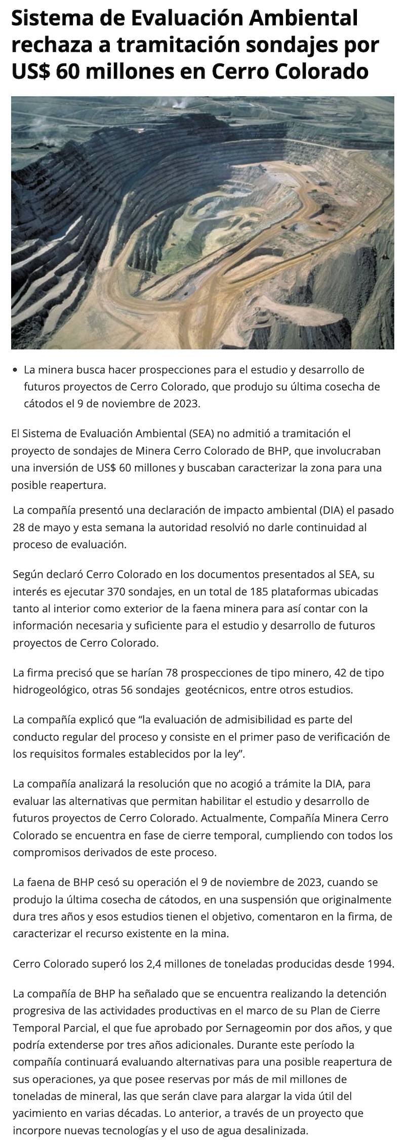 SEA no admite a tramitación sondajes por US$ 60 millones en Cerro Colorado - (redimin)