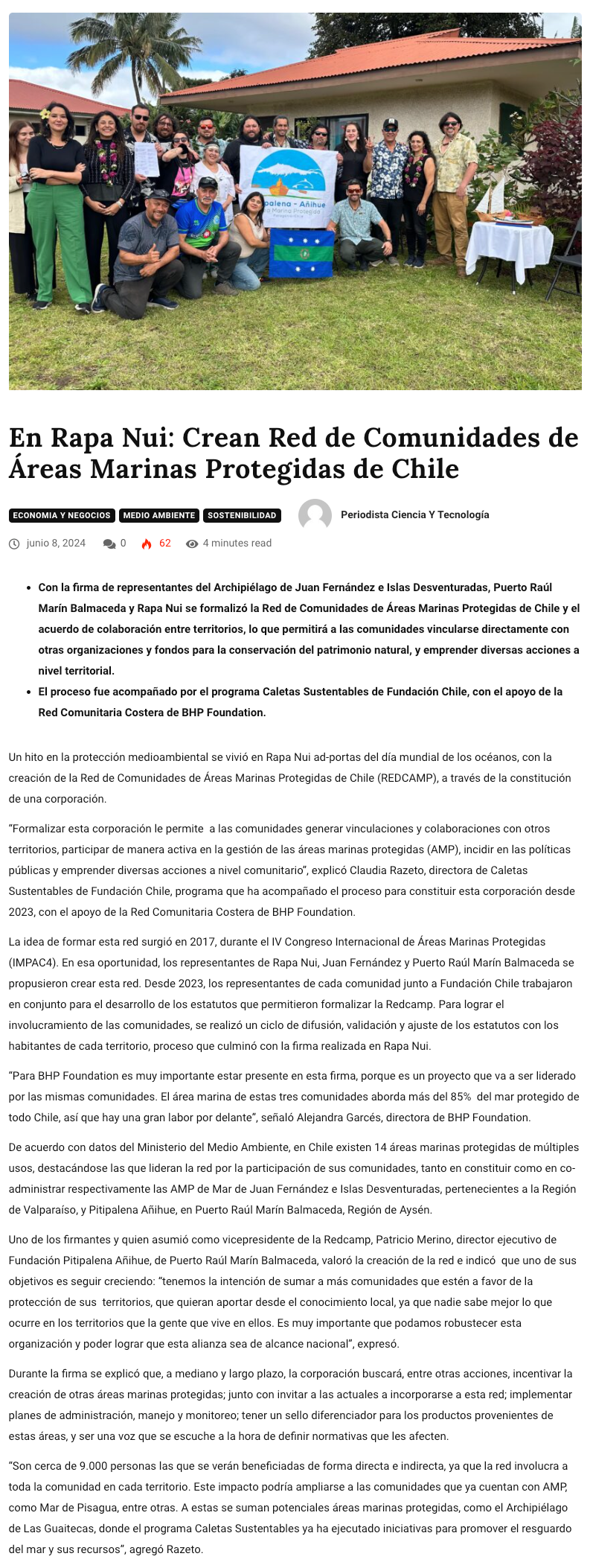 En el Día Mundial de los Océanos: Crean Red de Comunidades de Áreas Marinas Protegidas de Chile - (portalinnova.cl)