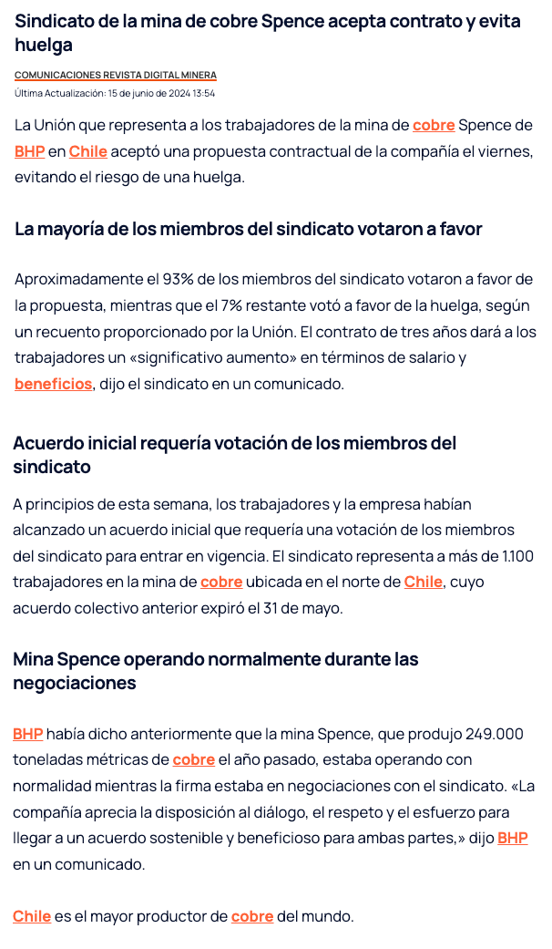 Sindicato minero Spence en Chile acepta oferta salarial de BHP - (news.eseuro.com)