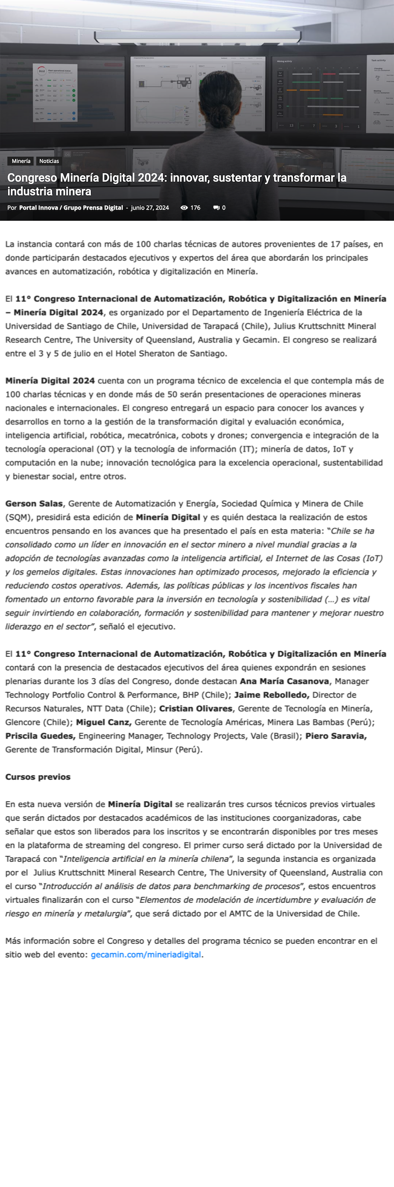 Congreso Minería Digital 2024: innovar, sustentar y transformar la industria minera - (mvcomunicaciones.cl)