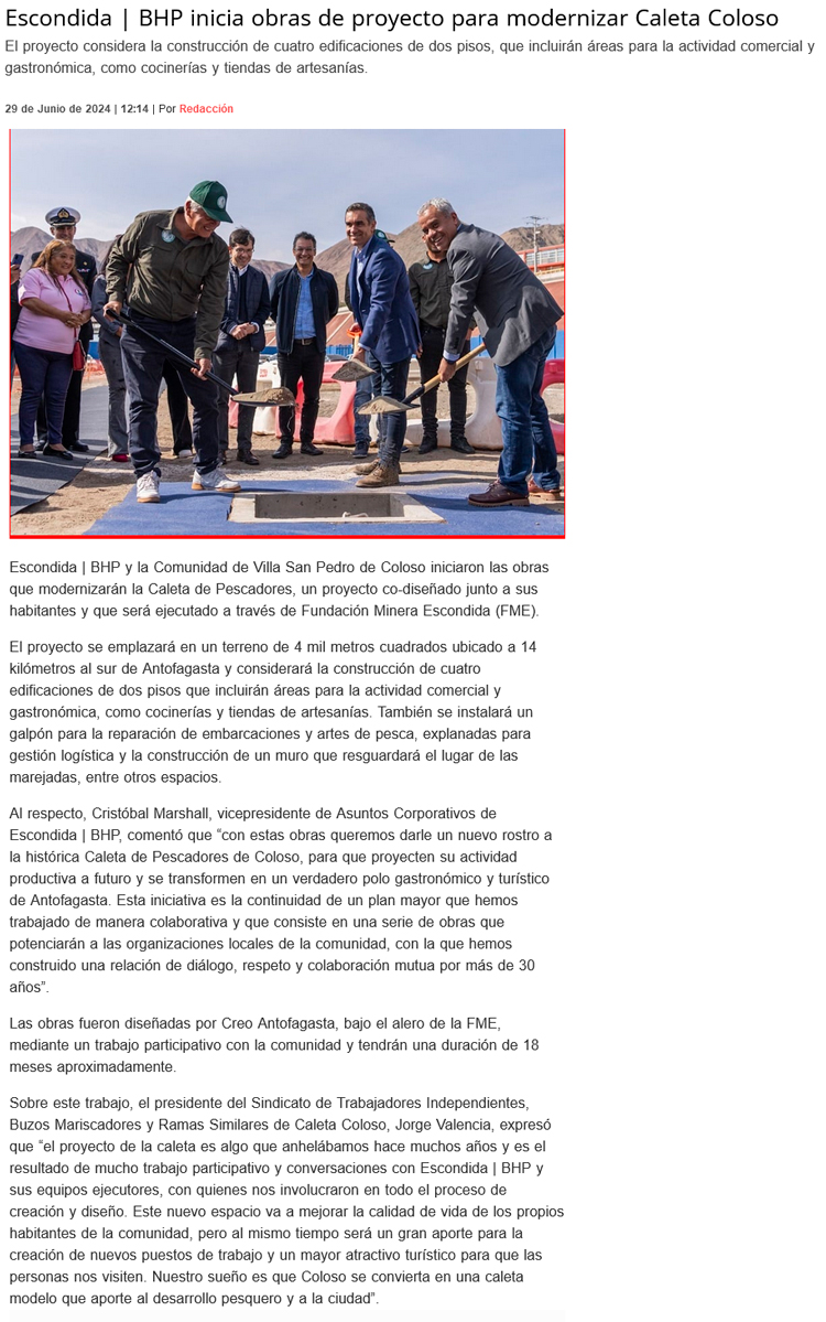 Escondida | BHP inicia obras de proyecto para modernizar Caleta de Pescadores de Coloso - (timeline)