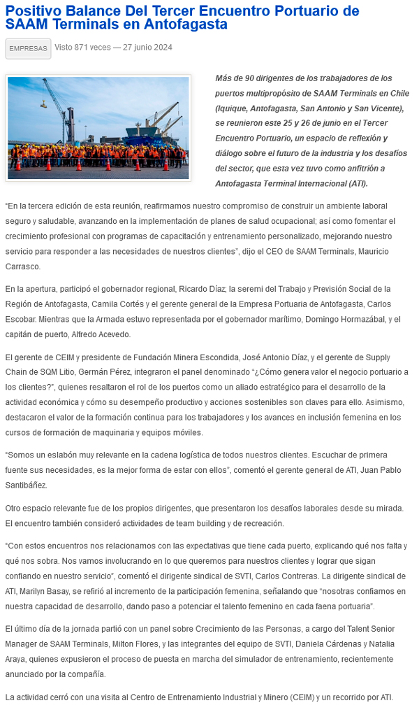 Positivo balance del Tercer Encuentro Portuario de SAAM Terminals en Antofagasta - (timeline)