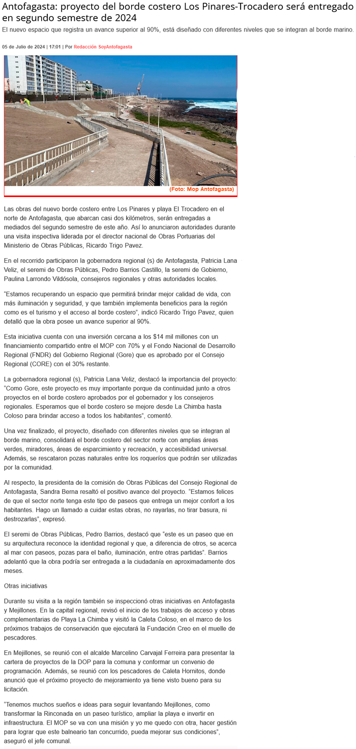 MOP Antofagasta entregará obras de borde costero Pinares – Trocadero en el segundo semestre de este año - (madero.cl)
