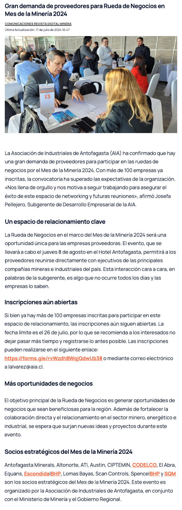 Mes de la Minería 2024: Más de mil reuniones se esperan en próxima Rueda de Negocios organizada por la AIA - (portalminero)