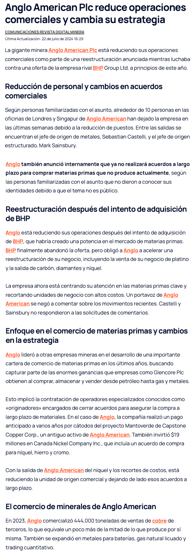 Anglo American pone en venta uno de sus proyectos mineros en Chile y otro en Australia - (biobiochile online)