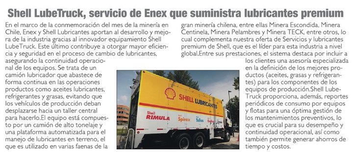Mes de la Minería: Shell LubeTruck, servicio de Enex que suministra lubricantes premium a equipos críticos en la gran minería - (elreporterodeiquique)