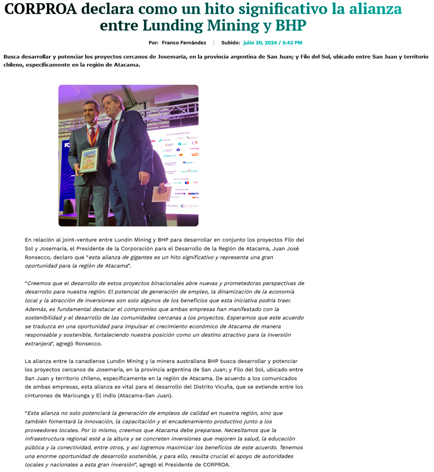 Corproa: "Esta alianza de gigantes es una gran oportunidad para Atacama" - (Nostálgica Online)