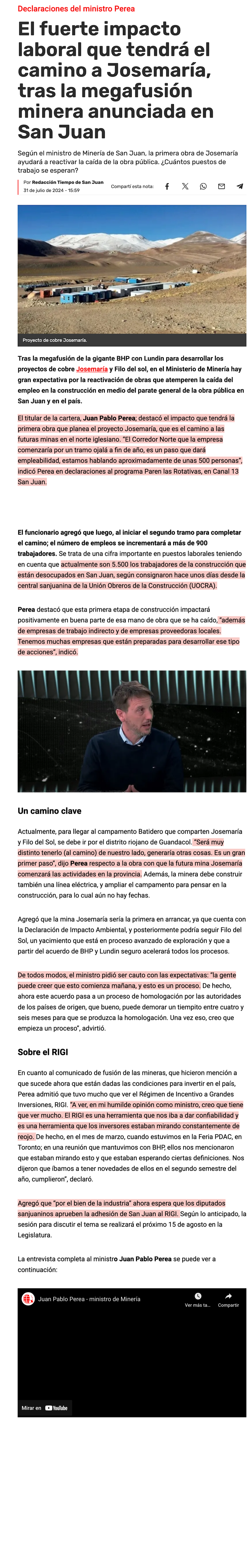 La minera más grande del mundo invertirá 10 mil millones de dólares en San Juan - (elsoldesanjuan.com.ar (Argentina))
