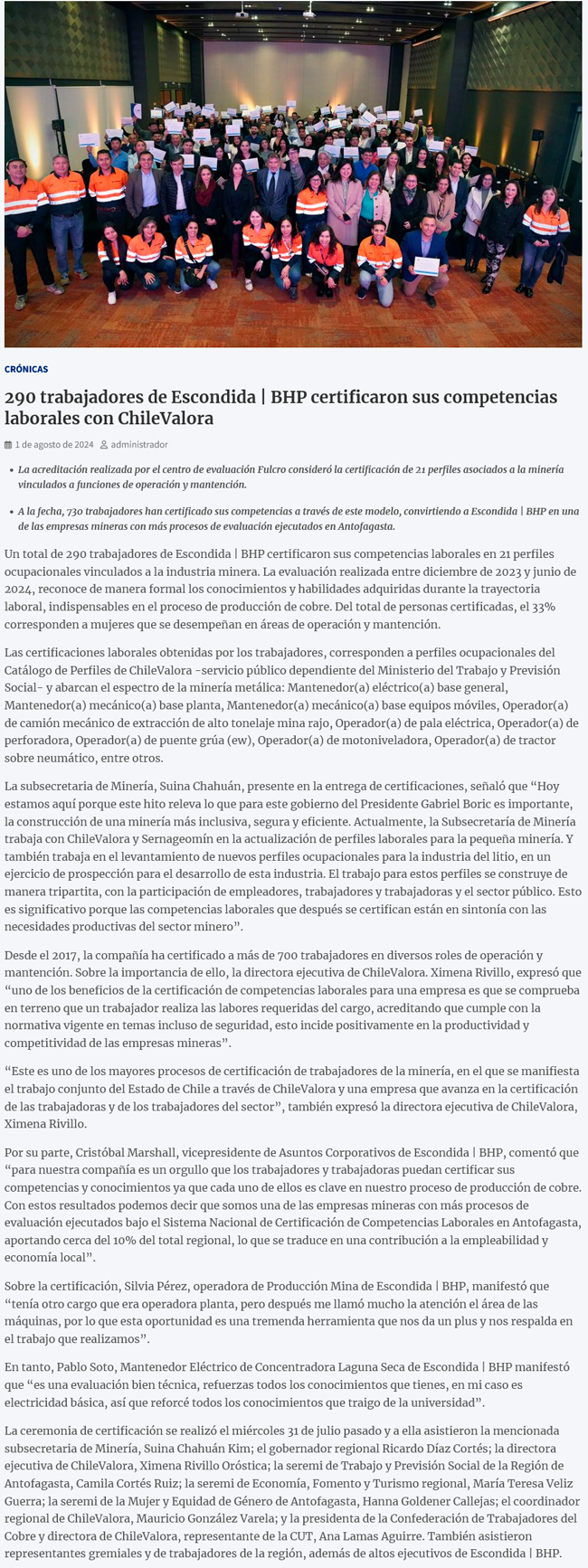 290 trabajadores de Escondida | BHP certificaron sus competencias laborales con ChileValora - (amagazine.cl)
