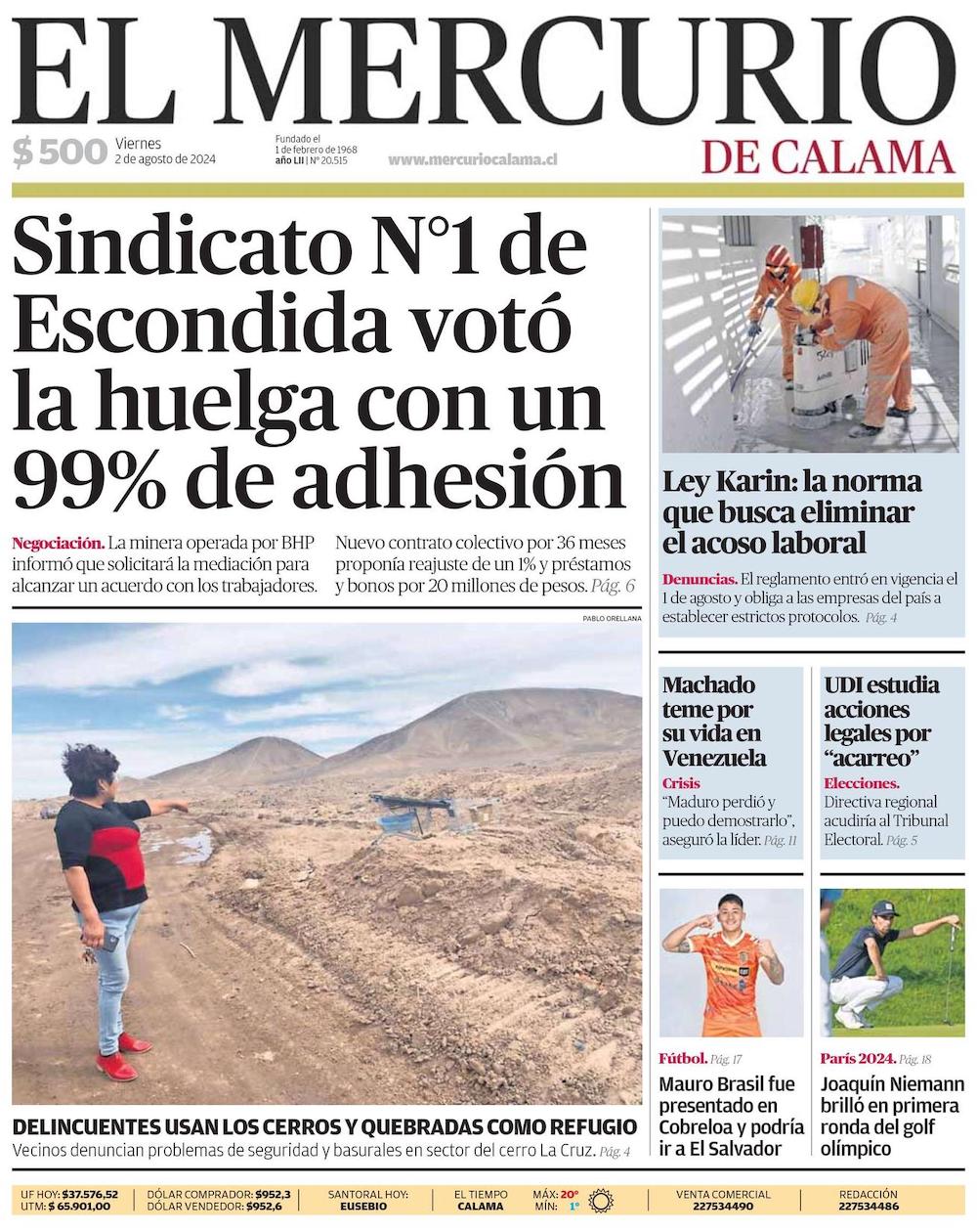 Sindicato Nº1 de Escondida vota la huelga con un 99,75% de los votos - (El Mercurio de Antofagasta)