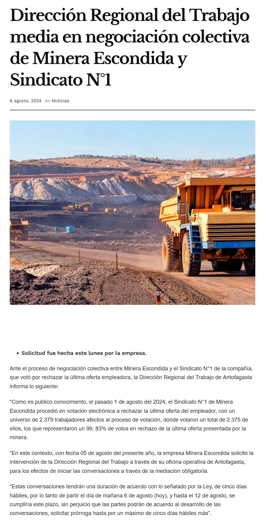 Dirección Regional del Trabajo mediará en negociación colectiva de Minera Escondida y Sindicato N°1 - (elregionalista)
