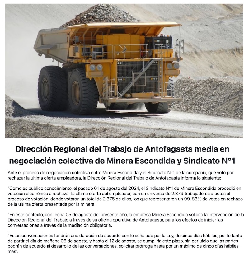 Dirección Regional del Trabajo mediará en negociación colectiva de Minera Escondida y Sindicato N°1 - (elregionalista)