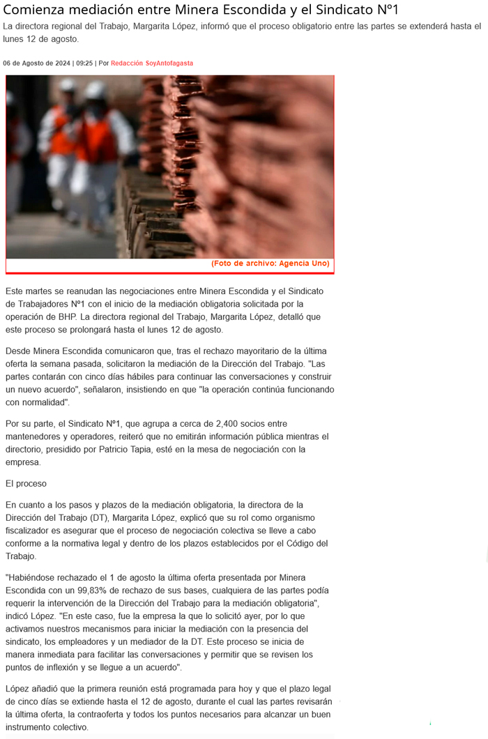 Inicia mediación obligatoria entre Minera Escondida y Sindicato Nº1 - (antofagasta.tv)