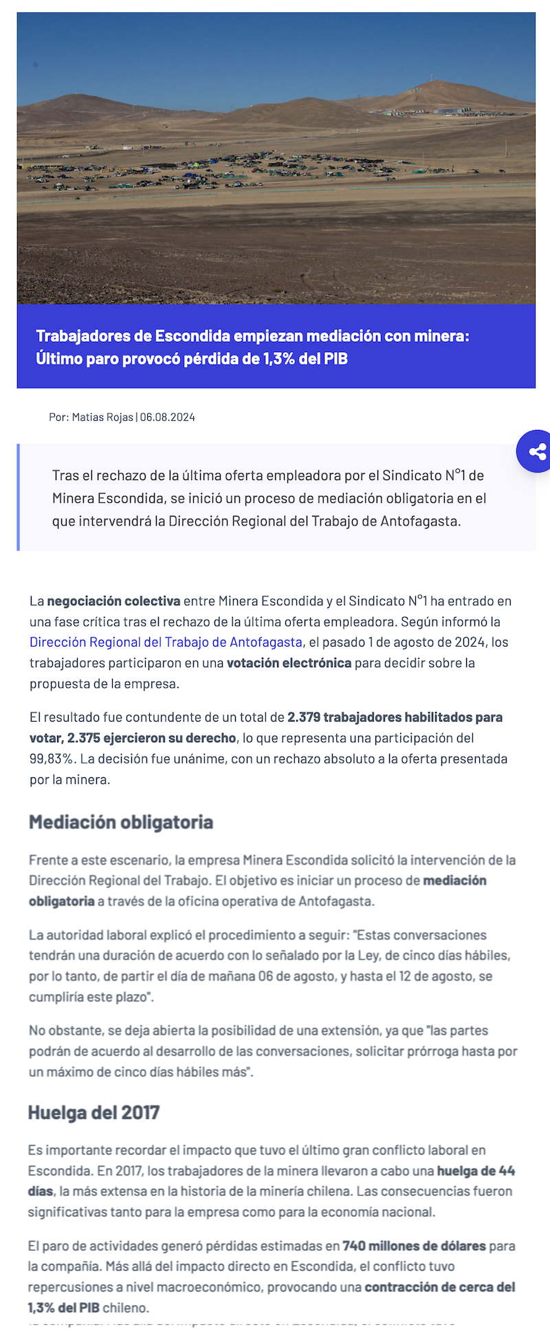 Comienza mediación entre Minera Escondida y el Sindicato Nº1 - (soyantofagasta)