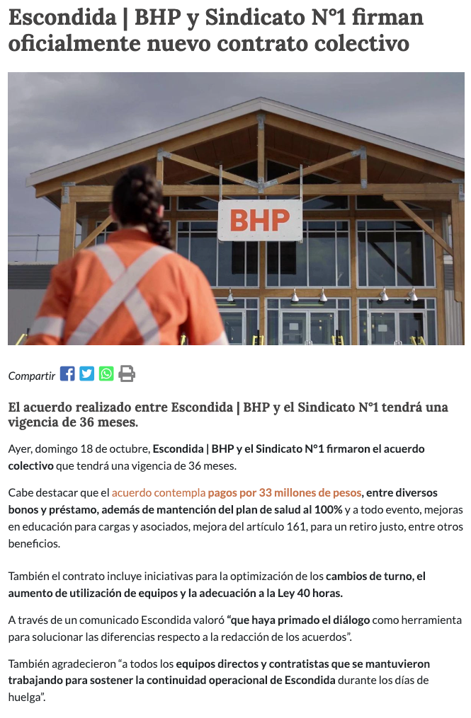 ¡Ahora sí! Escondida firma contrato colectivo y finaliza huelga legal - (chileminero.cl)