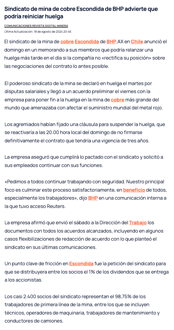 Escondida y Sindicato N°1: ¿Llegan a acuerdo? - (mch.cl)