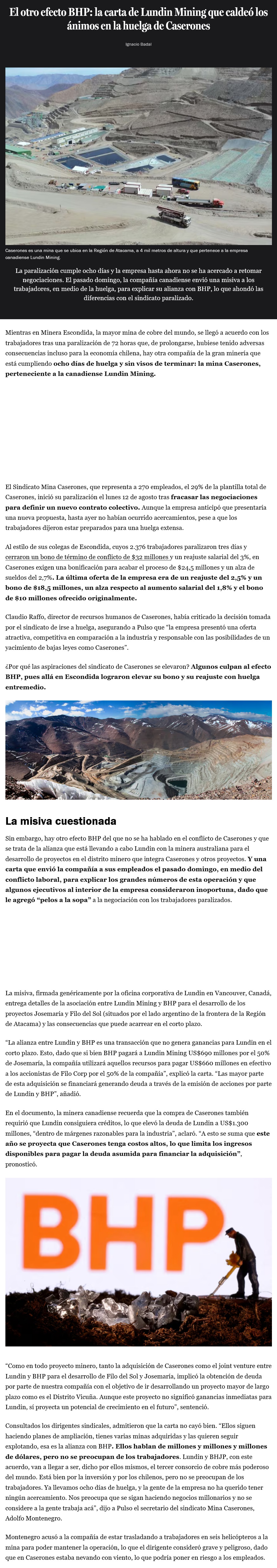 El otro efecto BHP: la carta de Lundin Mining que caldeó los ánimos en la huelga de Caserones - (Pulso)