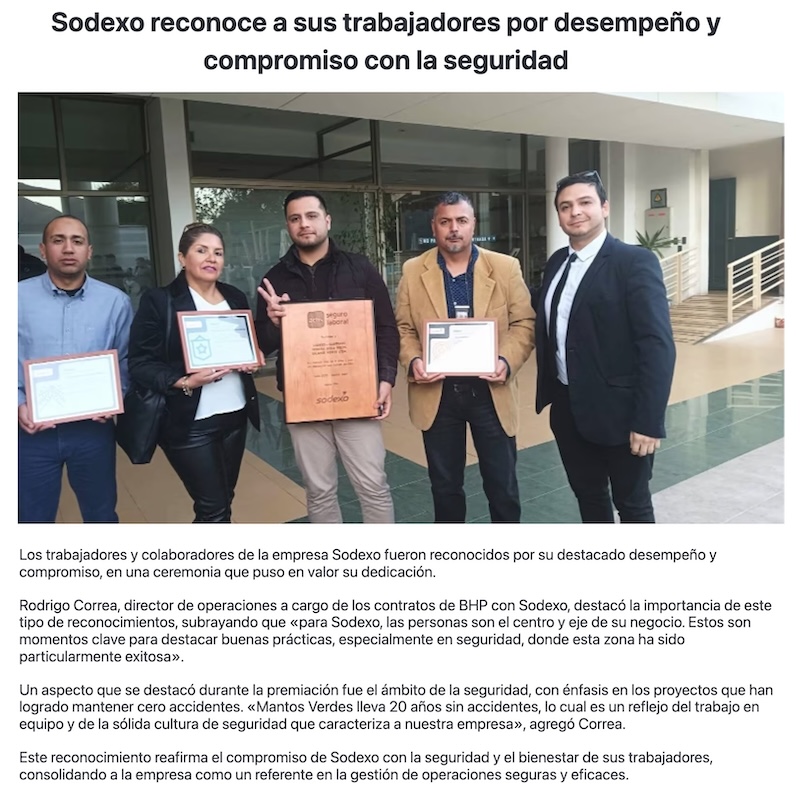 Sodexo reconoce a sus trabajadores por desempeño y compromiso con la seguridad - (elzorronortino.cl)