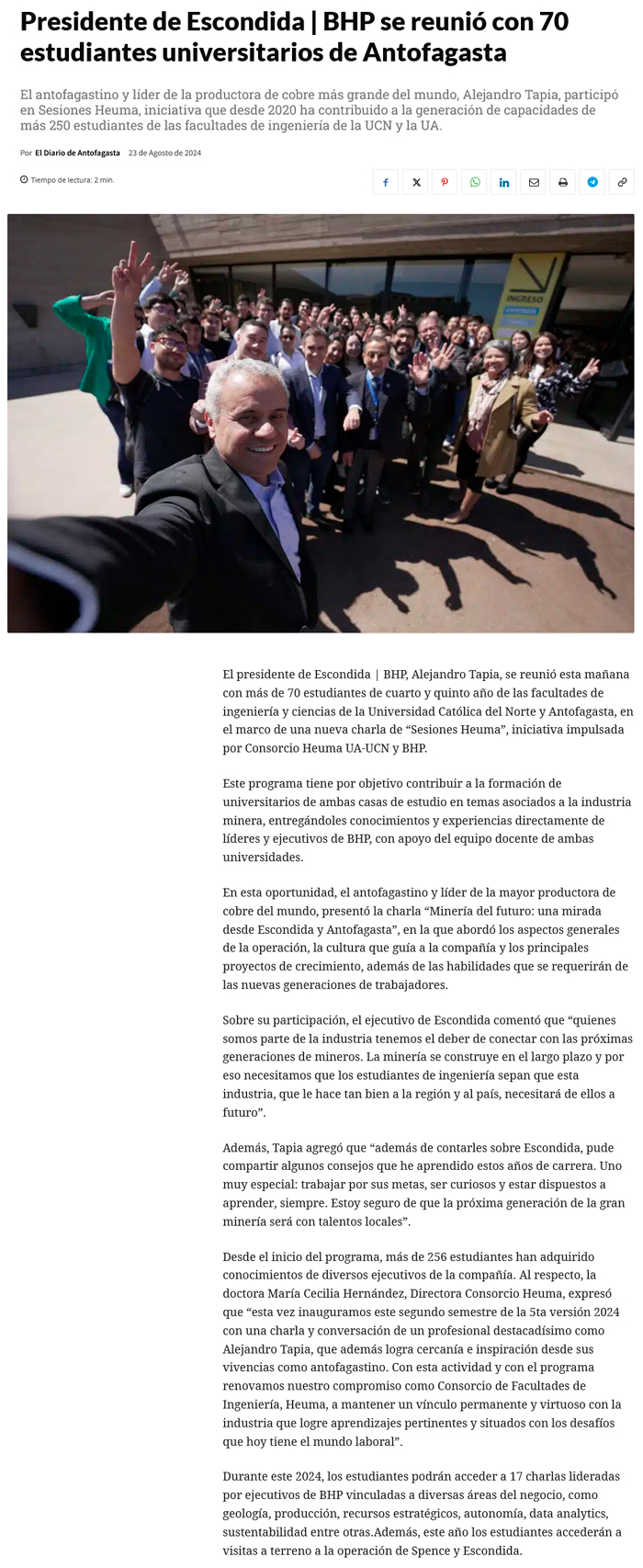 Presidente de Escondida | BHP se reunió con 70 estudiantes de universidad locales - (timeline)