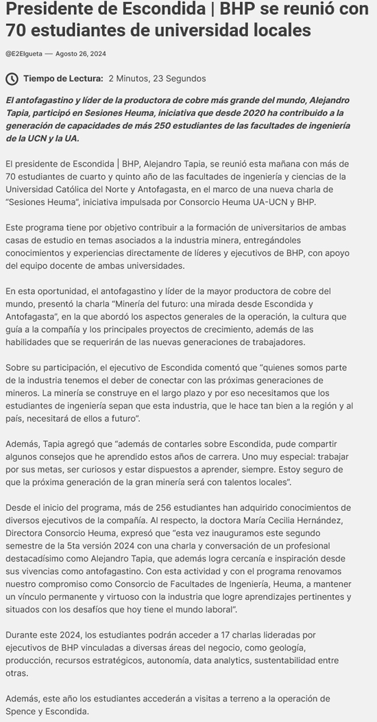Presidente de Escondida | BHP se reunió con 70 estudiantes de universidad locales - (timeline)