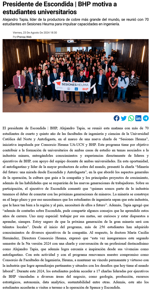 Presidente de Escondida | BHP se reunió con 70 estudiantes de universidad locales - (timeline)