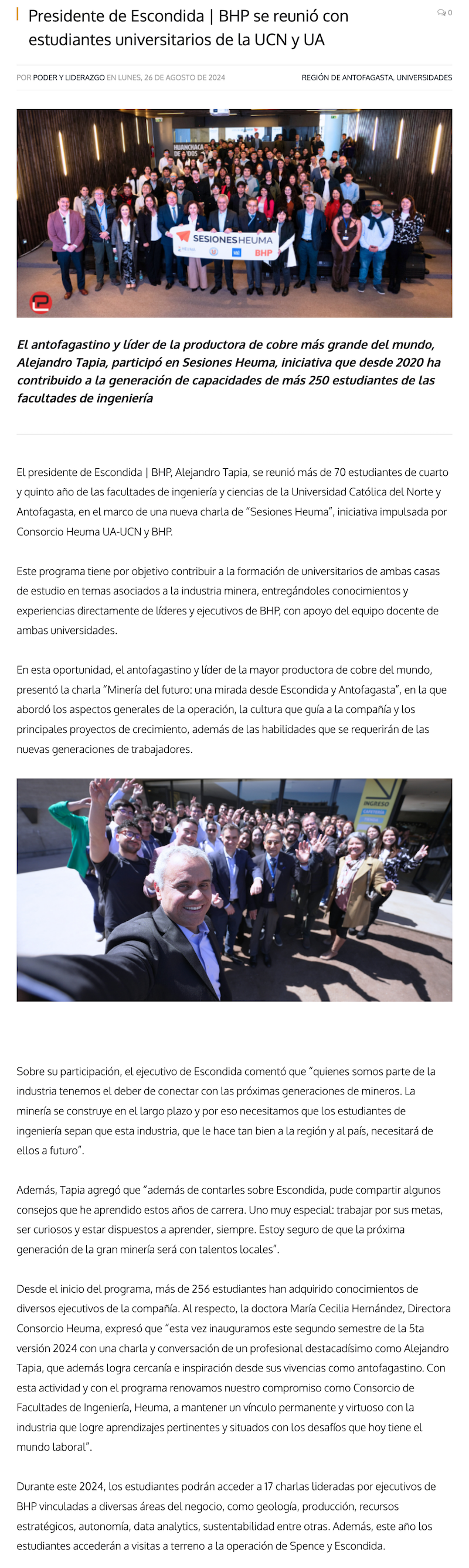 Presidente de Escondida | BHP se reunió con 70 estudiantes de universidad locales - (portalminero)
