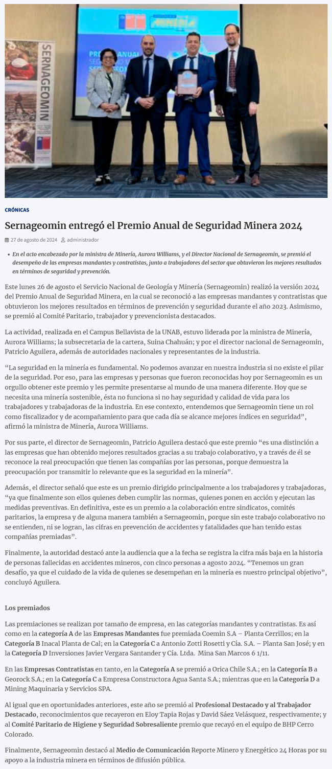 Sernageomin entregó el Premio Anual de Seguridad Minera 2024 - (desiertofm.cl)