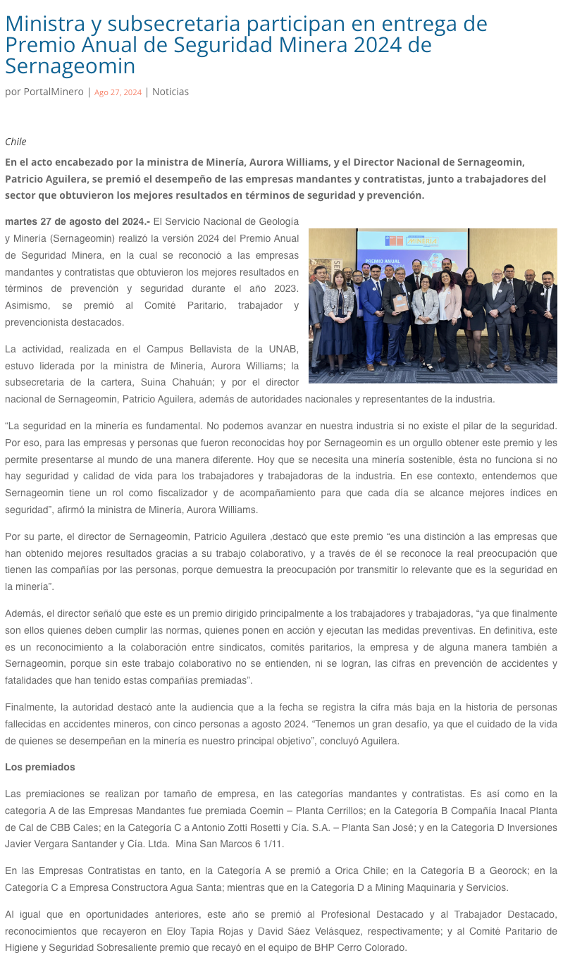 Sernageomin entregó el Premio Anual de Seguridad Minera 2024 - (desiertofm.cl)