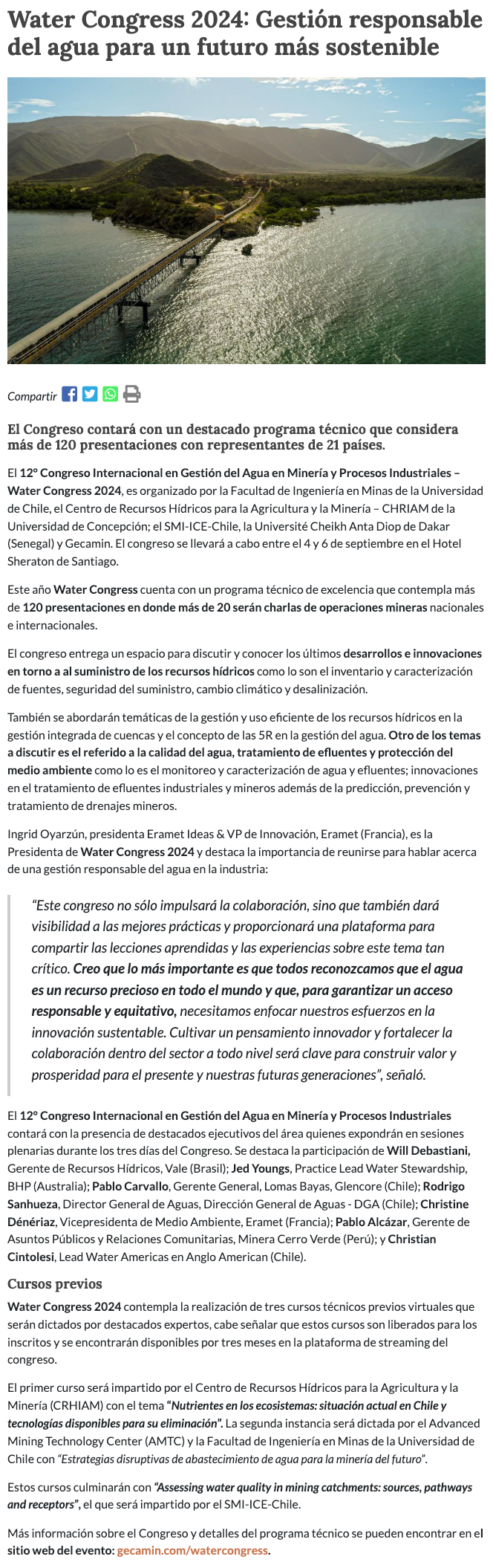 Water Congress 2024: gestión responsable del agua para un futuro más sostenible - (prensaeventos.cl)