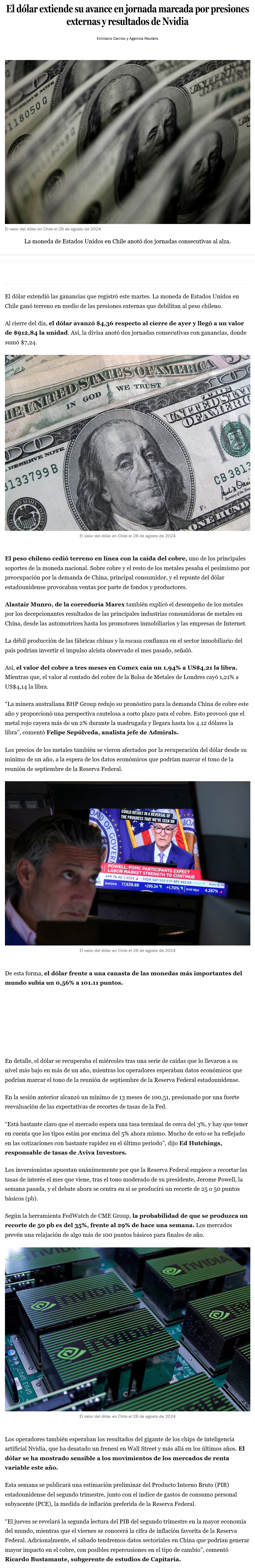 Dólar de este miércoles 28 de agosto: Revisa a cuánto se transa y qué lo está moviendo - (emol)