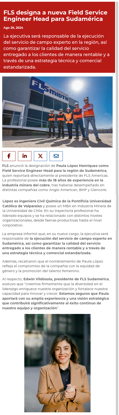 FLS designa a Paula López Henríquez como Field Service Engineer Head para la región de Sudamérica - (tierramarillano.cl)
