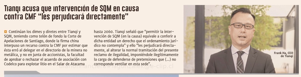 Tianqi presenta recurso para evitar que SQM se sume al pleito que tiene con la CMF - (El Mercurio de Santiago)