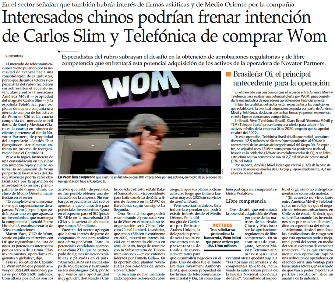 ¿Caben cuatro grandes operadores móviles? La pregunta que ronda tras el interés de actores de la industria por WOM - (Diario Financiero)