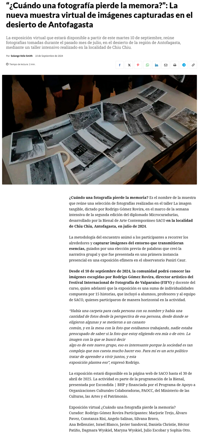 Bienal SACO anuncia exposición virtual de fotografías capturadas en el desierto - (antofacity.com)
