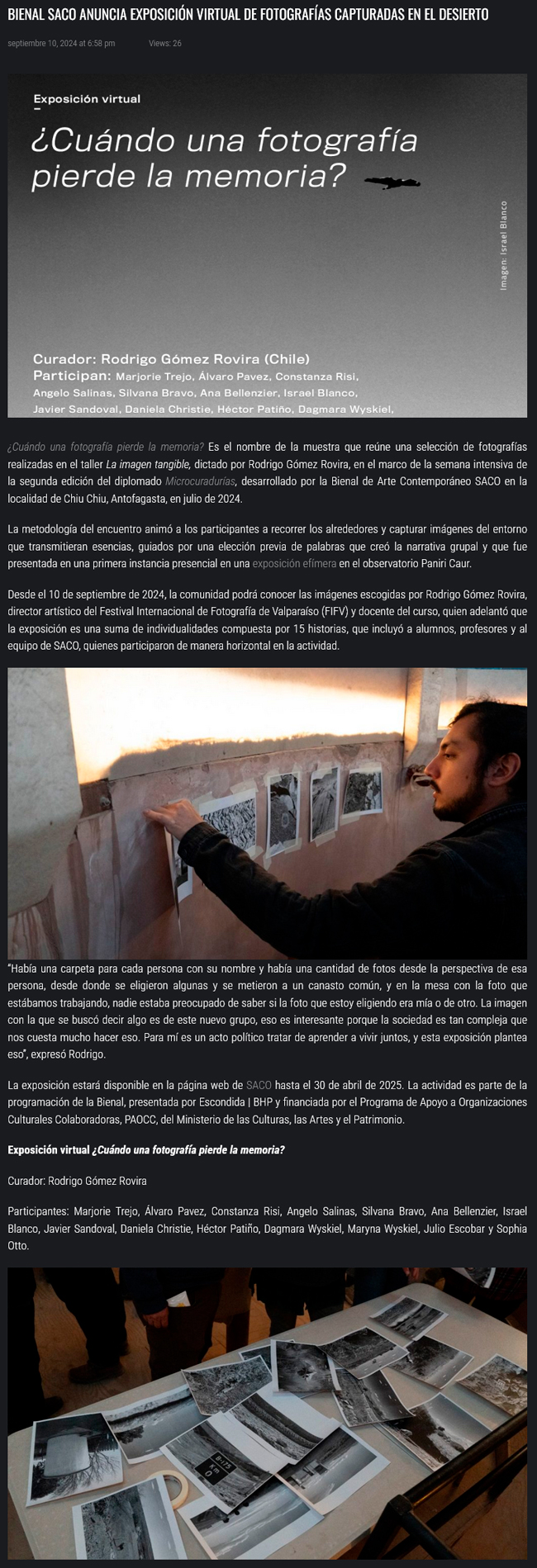 Bienal SACO anuncia exposición virtual de fotografías capturadas en el desierto - (antofacity.com)