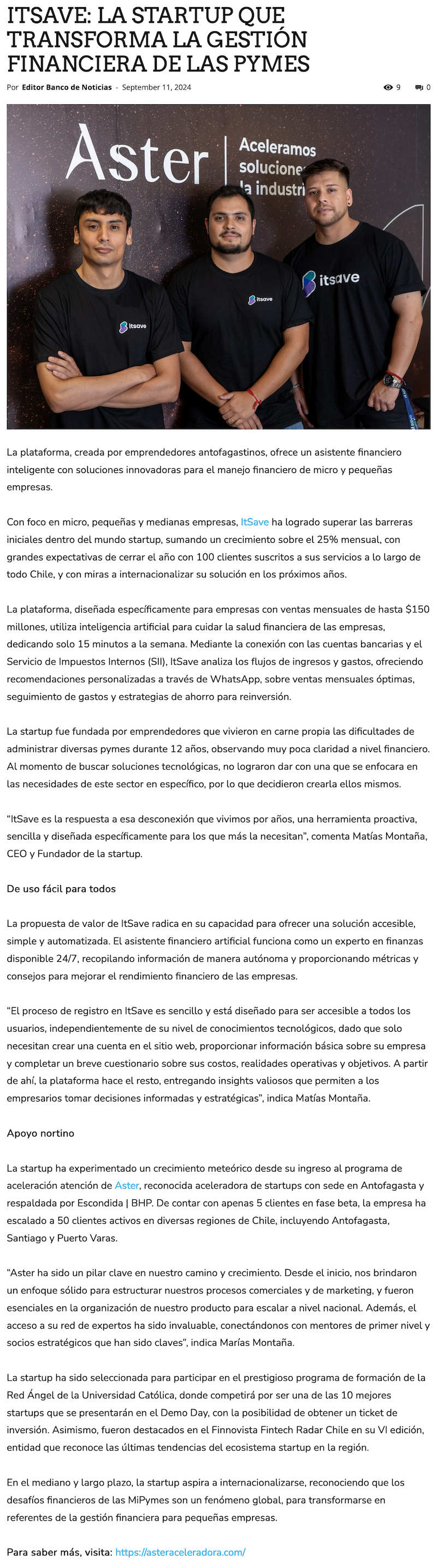 ItSave: La startup que transforma la gestión financiera de las pymes - (portalinnova.cl)
