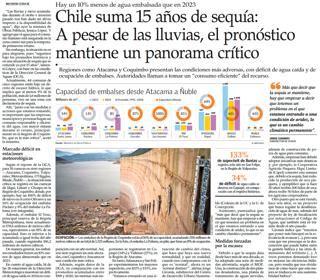 El balance hídrico del MOP: sin riesgo de restricción de suministro de agua y alta acumulación de nieve - (Pulso)