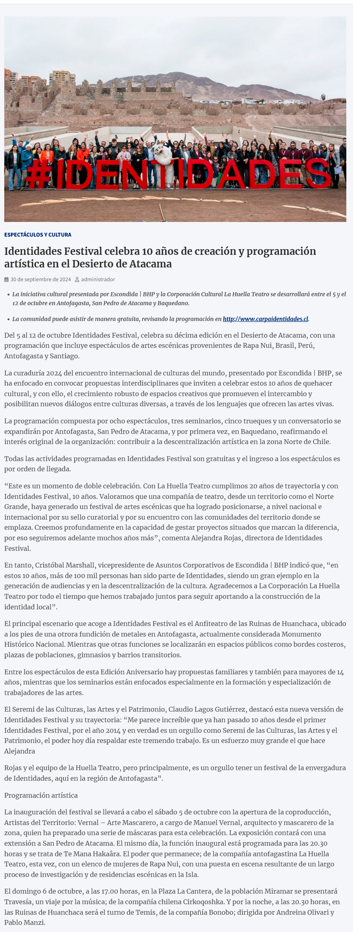 Identidades Festival celebra 10 años de creación y programación artística en el Desierto de Atacama - (enlalinea)