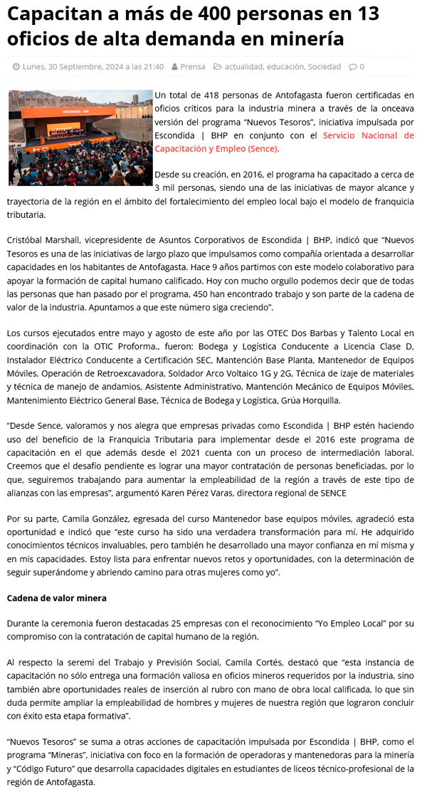 Capacitan a más de 400 personas en 13 oficios de alta demanda en minería - (antofagastanoticias)