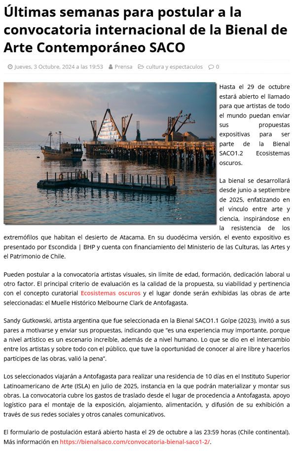 Últimas semanas para postular a la convocatoria internacional de la Bienal de Arte Contemporáneo SACO - (antofagastanoticias)
