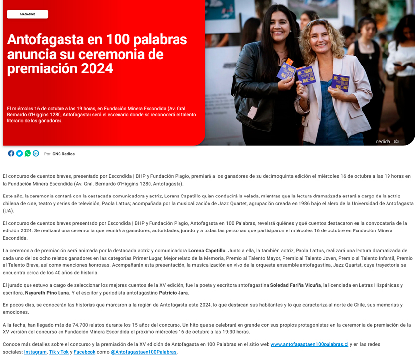 Antofagasta en 100 palabras anuncia su ceremonia de premiación 2024 - (fmplus.cl)