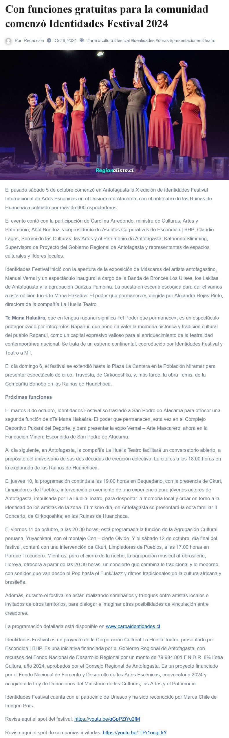 Con funciones gratuitas para la comunidad comenzó Identidades Festival 2024 - (regionesnoticias.cl)