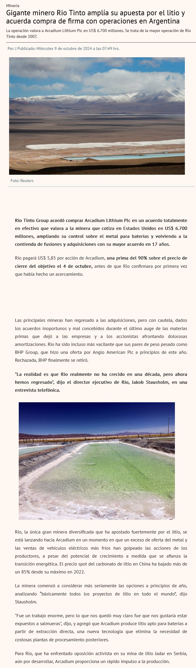 La millonaria transacción que convertirá a Rio Tinto en un competidor de Albemarle y SQM-Codelco - (Pulso)