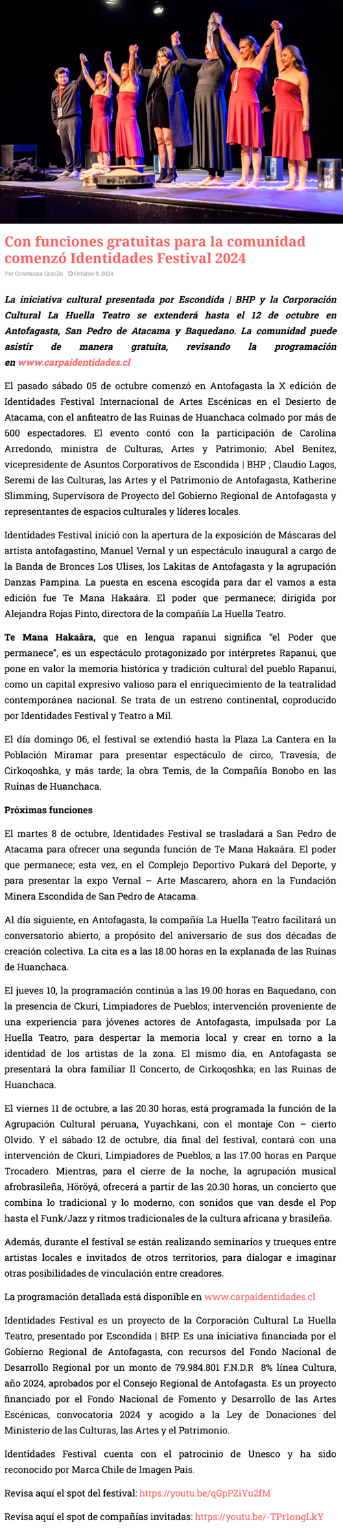 Con funciones gratuitas para la comunidad comenzó Identidades Festival 2024 - (cpcomunicaciones.cl)