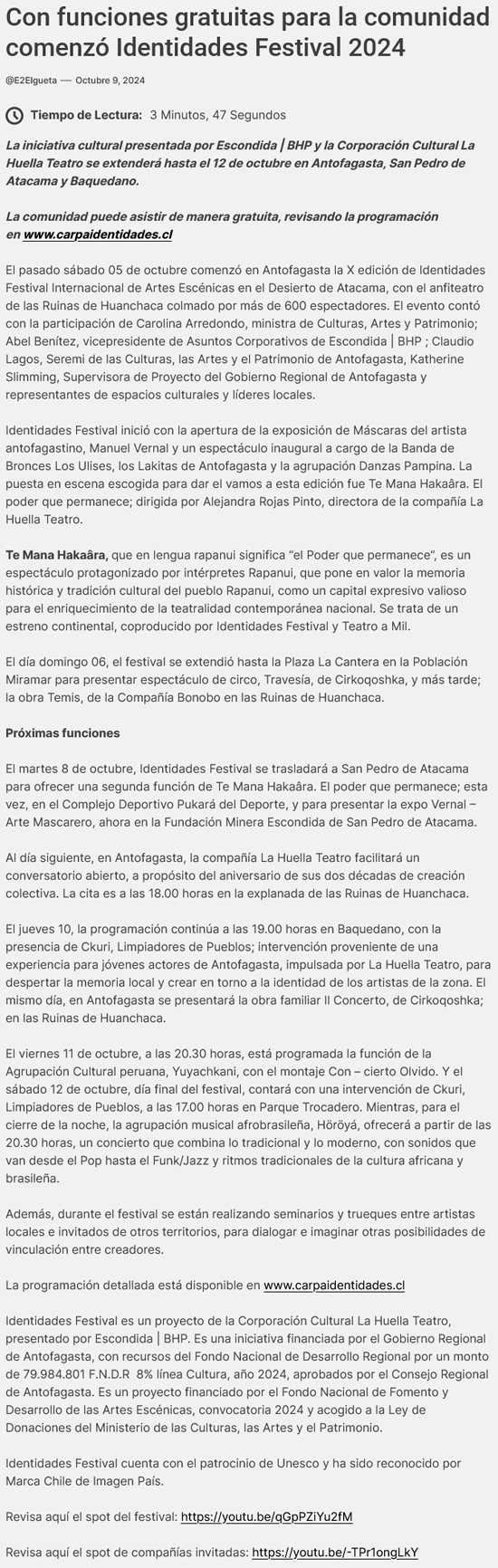 Con funciones gratuitas para la comunidad comenzó Identidades Festival 2024 - (cpcomunicaciones.cl)