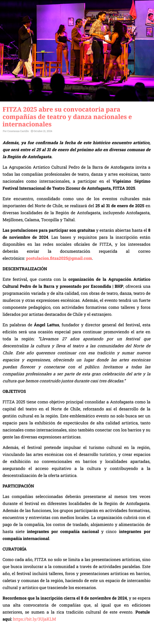 FITZA 2025 abre su convocatoria para compañías de teatro y danza nacionales e internacionales - (antofapop.cl)
